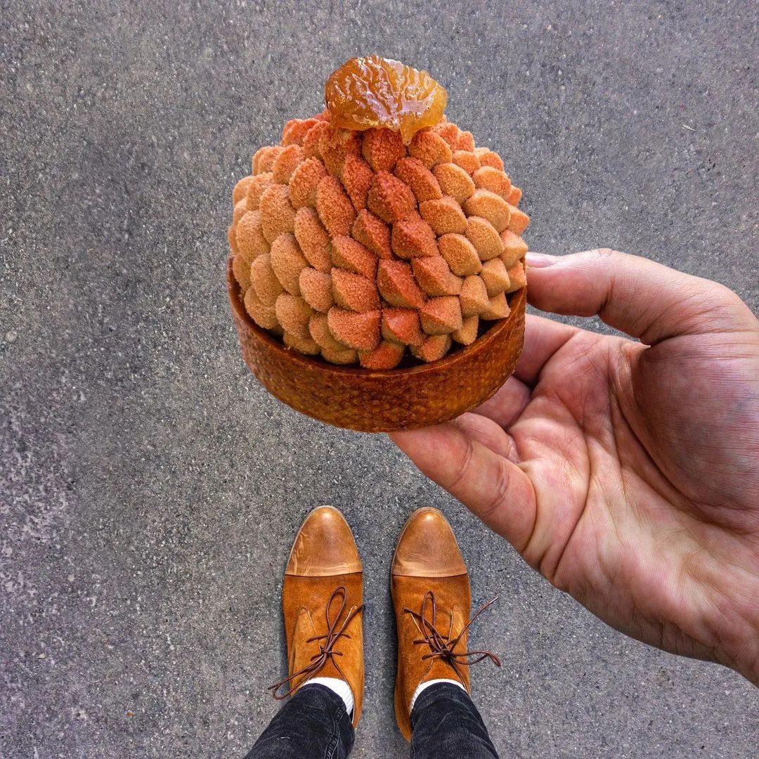 一眼看过去,这不就是月饼吗?以电影《月球之旅》为灵感,在Cedric Grolet的巧手下诞生。渐变的色系,花边的造型,小兔子的图案,可可爱爱,显得极为精致。巧克力橙、椰子柠檬胡椒和黑芝麻花生,风味搭配上也非常迷人。