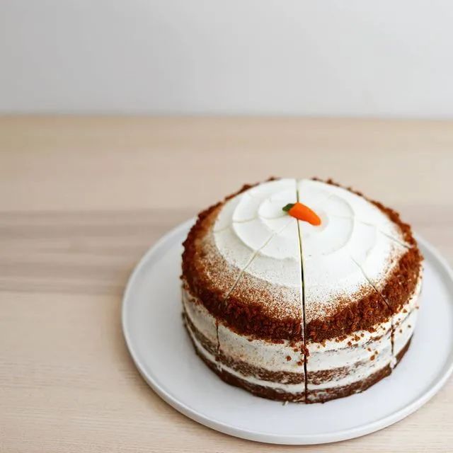 另外在蛋糕表面配以标记的划痕,既可以更轻松切分,侧面来说也呈现了一种规则的装饰感。