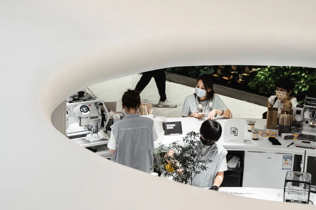 浅原咖啡的店面设计,以落地玻璃代替厚重的墙面,模糊了室内外的界线。无论是在琶洲老店,还是区庄新店,都能够满足客人边吹空调边享受阳光的愿望。