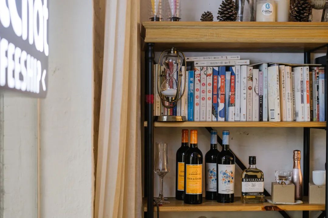 主理人Yonni很喜欢中世纪的格调,于是在吧台两侧都砌上了深色调的木板。又加上了从欧洲运回来的玻璃灯饰,边角还有裂痕瑕疵,中世纪的电影质感立即显现。