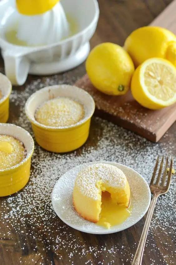 参考量:3英寸烤碗8个白巧克力140g黄油113g低筋面粉80g砂糖50g柠檬酱110g柠檬汁1个香草精4g鸡蛋4个蛋黄4个糖粉(装饰用)适量