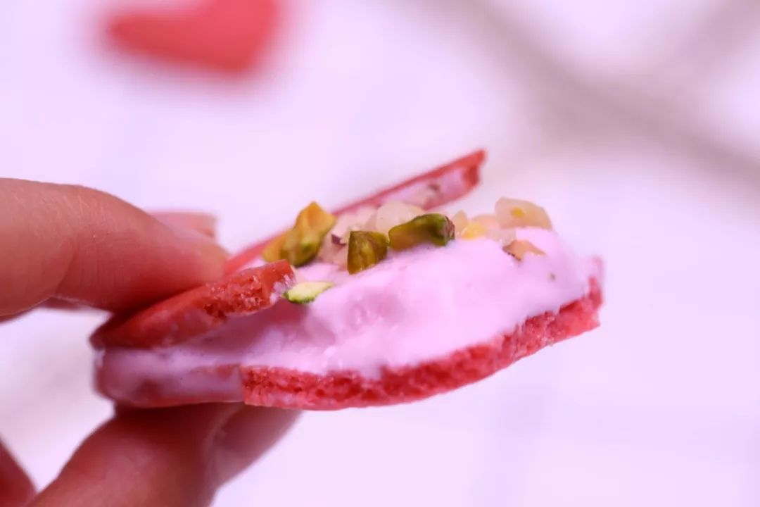 不知不觉又到520啦绞尽脑汁也没想到什么好点子本来想做个奶油蛋糕看看近乎三十度的天气还是算了最后想起来这款夹心饼干还没做过换成心形来个仪式感吧~