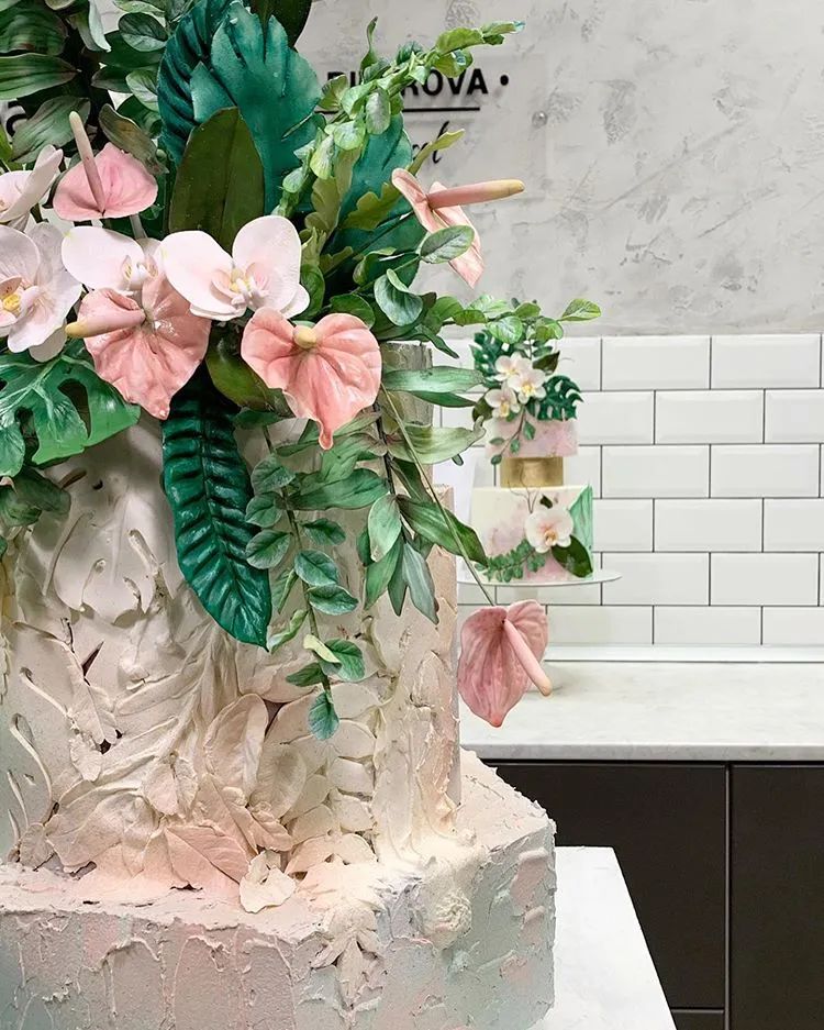 来自俄罗斯的烘焙师mkpiterova在上衣服获取灵感,以热带绿植为主要元素,在蛋糕上刻下浓浓的热带度假风情,温暖又可爱!