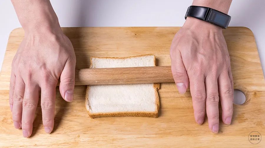 ①用擀面杖把吐司压实,在中间抹上比较浓郁的酸奶不用太多,也可以用酸奶发酵剂,这样做出来的口感会更浓郁一些。