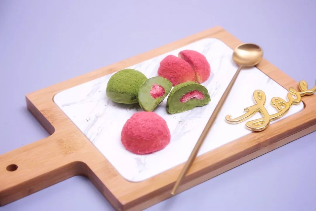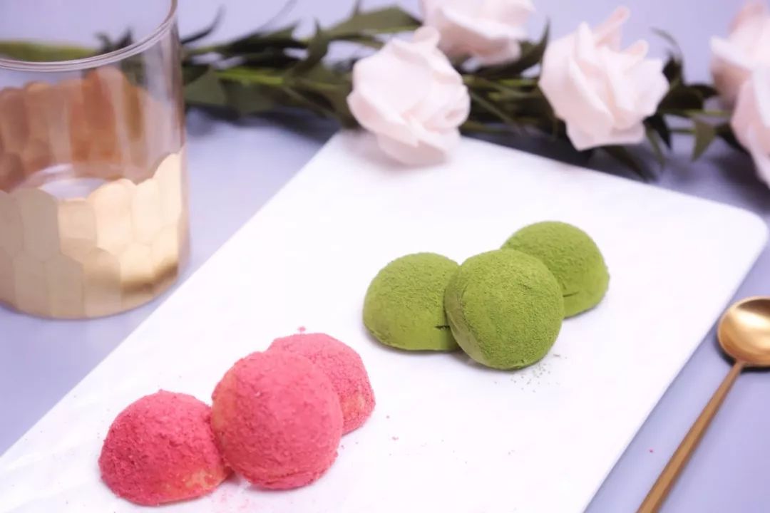 ⑧取出冻好的巧克力,分别用草莓粉、抹茶粉裹满表面就完成了。(也可以用可可粉,或其他自己喜欢的水果粉哦~ 芒果粉、蓝莓粉等,电商平台就能买到啦~)保存方式:密封冷藏后,约可保存2周。因为这个甜品巧克力部分属于生巧克力,温度高了容易变软,建议不要取出脱离冷藏状态太久,随吃随取才能保持较佳口感。