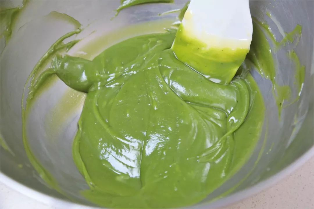 ⑤想做2种口味的话,这时可以将巧克力均分成两份,其中一份直接加入抹茶粉搅匀。