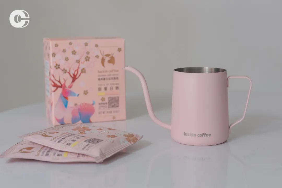 首先是,最大化实现保鲜!在包装袋中充入氮气,以阻隔空气中氧气与咖啡粉的接触,从而达到抗氧化效果;使用欧洲著名的意大利BRAMBATIBR 360烘豆机来承担重要的烘焙任务,全自动监控,遵循每款咖啡生豆的烘焙曲线,避免了因人为产生的误差;最后是精细的研磨,Ditting 1800全球顶级研磨设备提供了均匀、稳定的颗细度,完整保留咖啡的香气与风味。颜值出挑,把春天捧在手心这次的瑞幸春日挂耳咖啡的包装真的很出彩,打破了传统的印象,以少女粉色为主色调,一只极具瑞幸标志性的小鹿跃入其中,鹿角上是盛开的春樱,还没喝就率先从视觉上感受到缤纷的春日气息。