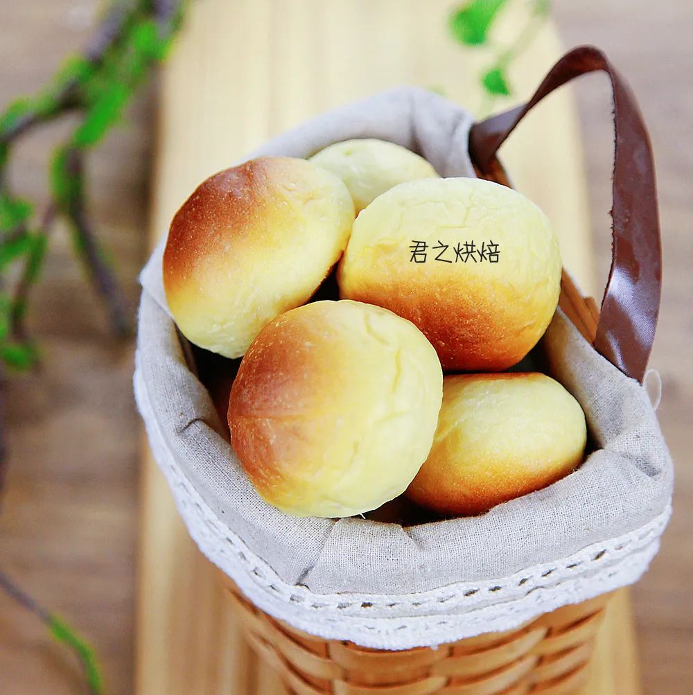 放入预热好上下火180℃的烤箱,中层,烤10分钟左右,面团表面上色以后即可取出(面团表面不用刷蛋液)。烤好的小面包,冷却后放入密封盒或放入保鲜袋,放置一段时间后再食用,口感最佳。Tips:1.淡奶是一种将牛奶去除部分水分以后的奶制品,注意,淡奶不是淡奶油,它比牛奶更浓缩,味道更浓郁,颜色比牛奶要黄,经常被用来制作港式奶茶。这款小面包使用淡奶和面,使做出来的小面包不仅充满了浓郁奶香,而且拥有非常致密的组织和柔软细腻的质地,口感非常棒。如果没有淡奶可以按步骤里所示用奶粉+水代替,但还是推荐用淡奶尝试一下,感受下别样的滋味。2.因为使用了淡奶,面团的颜色要比我们平时做面包的面团黄一些,一开始揉面的手感也会稍有不同,不过它和我们做其他面包的流程是一样一样的哈,耐心慢慢揉,扩展阶段就会出现的。3.这款小面包烤之前没有刷蛋液,烤出来亚光的感觉。如果你喜欢其他甜面包那种表面亮亮的色泽,可以在烤之前表面刷一层蛋液。