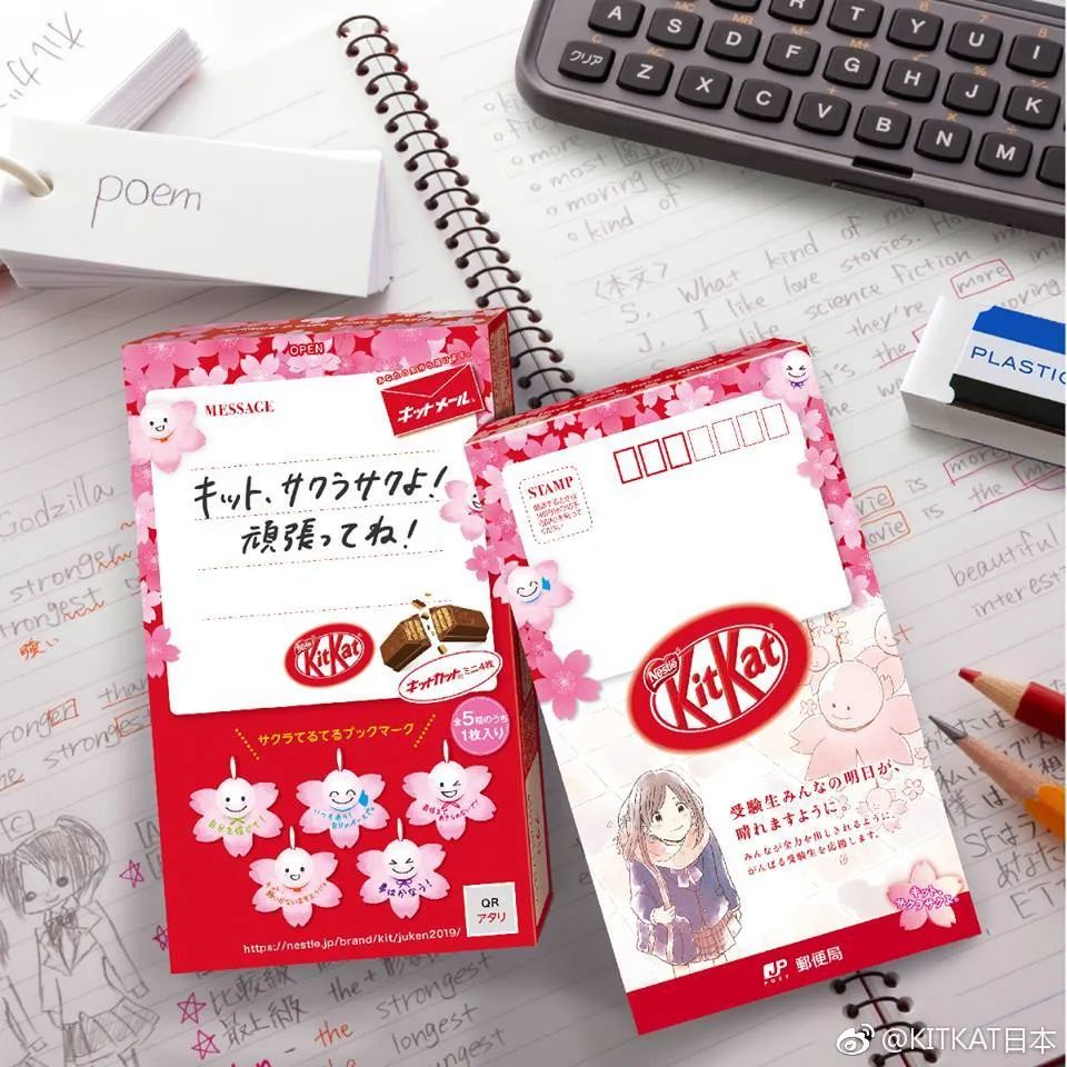 为什么这样一块被全世界广泛接纳的巧克力却在日本却被赋予了另外的深意?原来日文的“きっと勝つよ”(kittokatsuyo)意思就是“必胜”,常用在面临升学压力的考生身上。因为发音与KitKat相似,所以家长会在考试之前买来送给孩子,同学之间也会在上面手写祝福互赠加油。这样,它便紧紧连接起了人们的情感,成为承载关心的寄托。
