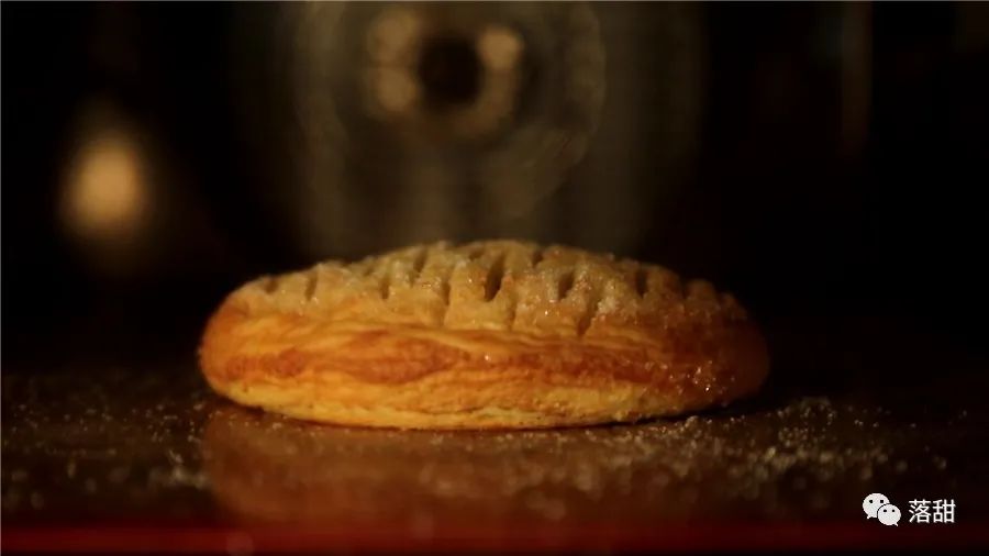 烤制过程中,面皮会膨胀成“千层酥”,表面焦糖化,里面的苹果馅本来就是熟的,烤制过程中会进一步失水,以免水分过多使面皮快速变软。