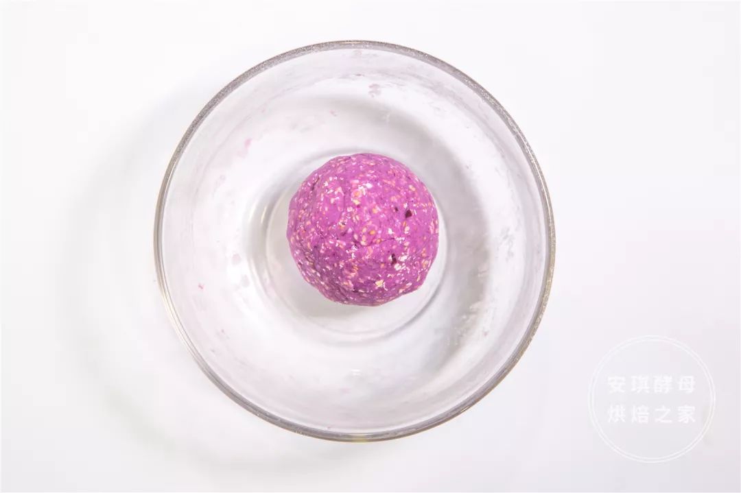 ①除牛奶以外,在紫薯泥中混入所有材料。