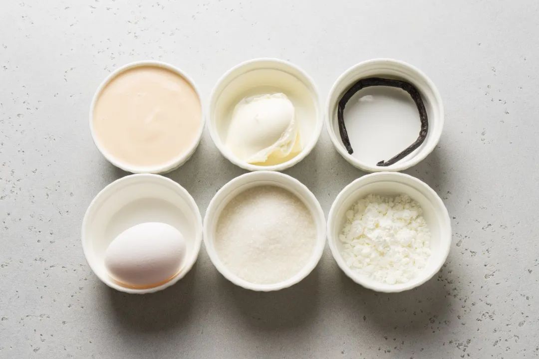 芝士蛋糕糊【506克】225 克……奶油芝士/或其他干酪 75 克……糖粉 16 克……玉米淀粉 1 个……香草荚(波旁)110 克……全蛋(2个) 80 克……酸奶油