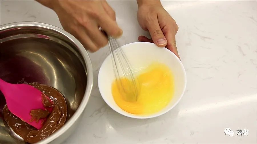 常见的磅蛋糕处理,不是抹油,就是抹油后再撒面粉。这里倒好,油和面粉混合直接抹上,合二为一,效果不错。用什么面粉,无需纠结。②主面糊