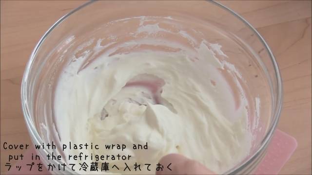 ②淡奶油加细砂糖2打至6分发,马斯卡彭1用蛋抽搅拌顺滑,打发的淡奶油和马斯卡彭混合均匀,放入冰箱冷藏备用