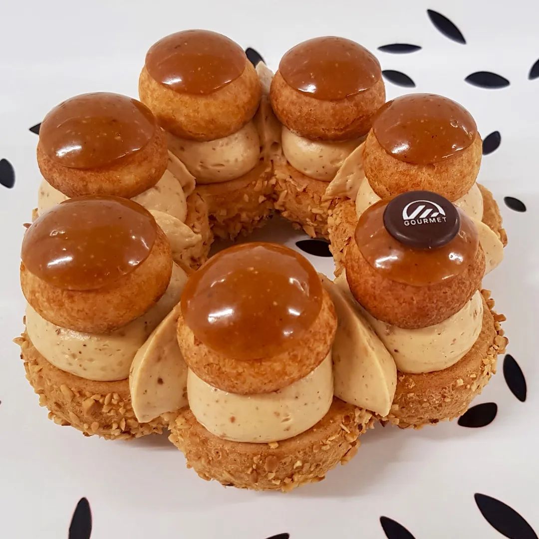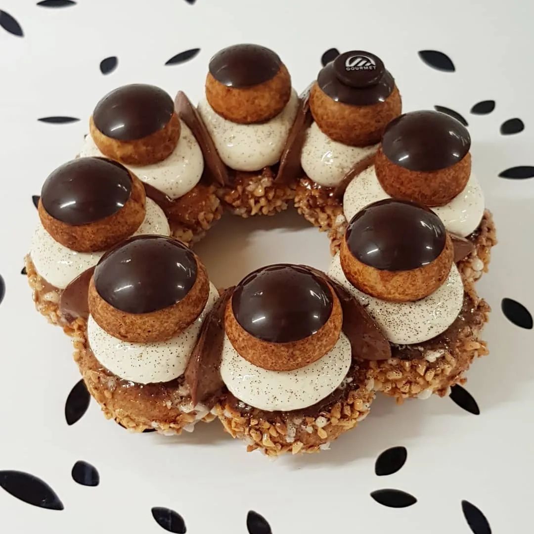 提示:↑点击上方"世界烘焙配方"快速关注这个开心果巴黎布雷斯特被它的创造者MOFJulien Boutonnet(下图)称为“开心果皇冠泡芙”!这种形式也是MOF最醉心的,不止开心果,还有介么多......2iih☜今日配方下载提取码每天20:30更新,每篇文末左下角“阅读原文”点击进入均可下载当日配方、视频或图片文件,省去大家自己复制黏贴的麻烦,配方文件无任何水印设置;“提取码”因近日度娘抽风搞怪,暂不提供无码下载服务,只能按她的规矩来,所以下载之前先把这个“提取码”复制一下~另外,部分地区可能因为某些不可抗原因导致无法直接点击阅读原文,可以在文末的【置顶留言】中找到链接和提取码。开心果巴黎布雷斯特PISTACHIORASPBERRYCROWNByJulien Boutonnet配方量:1个(直径16CM,6个大泡芙组成)泡芙【1494克】230 克……牛奶230 克……水205 克……黄油 6 克……盐235 克……T55面粉505 克……全蛋 83 克……热牛奶(非必须)适量克……杏仁碎适量克……砂糖适量克……可可脂制作:1、将牛奶、水、黄油和盐煮沸,加入面粉搅拌使水分蒸发后(锅底出现薄膜,面糊呈面团状态)离火。2、分次加入全蛋搅拌至细腻光亮的面糊状,如果必要,可以将牛奶加入搅拌至所需的状态。3、用18号花嘴在铺垫烘焙纸的烤盘上挤6个相互靠近的球形,整体呈“皇冠”的状态,表面撒杏仁碎和砂糖,并撒适量可可脂。4、再用8号花嘴挤一些小泡芙,同样顶部也撒一些可可脂。5、放入预热至175℃的的风炉,然后立刻调温至150℃烤熟。自制开心果帕林内【559克】128 克……细砂糖 3 克……盐之花(海盐) 8 克……山梨糖醇 48 克……水192 克……开心果(整粒的)125 克……开心果酱 55 克……可可脂(软化)制作:1、将细砂糖、盐和水加热煮成焦糖。2、将烤熟的开心果(120℃烘烤)倒入焦糖中。3、继续加热并搅拌至开心果被焦糖完全披覆,且焦糖呈所需焦糖的颜色时,倒在硅胶烤垫上冷却。4、然后放入破壁机中研磨,冷冻使之快是降温。5、将冷却的“步骤4”再次用破壁机搅打研磨至细腻顺滑,注意温度不要超过29℃。6、将软化的可可脂加入,搅拌均匀。开心果奶油【379克】172 克……卡仕达 88 克……自制开心果帕林内(配方↑) 8 克……吉利丁冻 36 克……黄油(冷藏,切丁) 75 克……35%稀奶油,打发制作:1、将热的卡仕达酱与自制开心果帕林内、冷藏切丁的黄油以及吉利丁冻混合搅拌均匀。2、倒在烤盘上覆盖保鲜膜,速冻降温。3、搅打至顺滑后将打发的稀奶油加入拌匀(使用时每个成品挤入300克)。覆盆子夹心果冻【83克】32 克……覆盆子果泥#1 8 克……细砂糖 1 克……NH果胶粉32 克……覆盆子果泥#210 克……覆盆子(切小块)制作:1、将32克覆盆子果泥加热至50℃,将提前混合在一起的细砂糖和NH果胶粉加入拌匀并煮沸。2、将剩余的另外32克覆盆子果泥和覆盆子丁加入拌匀,倒入直径2.5CM的半球形硅胶模具内,冷冻。3、冷冻脱模后,每两个半球形合成一个球形使用。开心果泡芙镜面涂层【760克】400 克……自制开心果帕林内300 克……方顿糖/忌廉糖(white fondant) 60 克……糖浆适量克……柠檬黄色素制作:1、将方顿糖和自制帕林内混合加热至50℃(注意:fondant不是做翻糖蛋糕的“翻糖”)。2、加入色素拌匀,视浓稠程度考虑是否需要加入糖浆调整。3、装入裱花袋,分别挤入半球形硅胶模具内,放入填充了“开心果奶油”的小泡芙,使淋面凝结在小泡芙表面。组装&装饰1、制作并烘烤“皇冠泡芙”和小泡芙。2、泡芙烤好后出炉冷却,将“皇冠泡芙”翻转底部朝上,用星形花嘴戳孔并稍压。3、将“开心果奶油”挤入泡芙。4、将“覆盆子夹心果冻”放在顶部,继续将“开心果奶油”挤在其上并完全覆盖。5、将小泡芙放在每个奶油上,冷藏。※为了提高生产效率,可以提前制作出了皇冠泡芙、烘烤后冷冻。当需要制作时,放入180℃的烤箱中烘烤2-3分钟解冻后再填充奶油等装饰。喜欢原汁原味继续CHEF的英文版2iih☜今日配方下载提取码每天20:30更新,每篇文末左下角“阅读原文”点击进入均可下载当日配方、视频或图片文件,省去大家自己复制黏贴的麻烦,配方文件无任何水印设置;“提取码”因近日度娘抽风搞怪,暂不提供无码下载服务,只能按她的规矩来,所以下载之前先把这个“提取码”复制一下~另外,部分地区可能因为某些不可抗原因导致无法直接点击阅读原文,可以在文末的【置顶留言】中找到链接和提取码。PISTACHIORASPBERRYCROWNByJulien Boutonnet(one 16 cm diameter cakewith 6 choux)CHOUX PASTRY230 g milk230 g water205 g butter 6 g salt235 g flour T55505 g eggs 83 g milk (added, warm) qs g amandes, crushed qs g sugar qs g cocoa butterprocedure:1.Boil milk with water, butterand salt. Add flour and dry outoff the heat.2.Gradually add eggs to forma smooth and soft texture.Add milk if necessary.3.Pipe crowns with a N°18 tip(25 g per choux). Sprinklewith almonds and sugar.Sift cocoa butter on top.4.Also pipe small chouxwith a N° 8 tip, also siftingwith cocoa butter.5.Bake at 175 °C immediatelyturning down to 150°Cin a fan forced oven.PISTACHIO PRALINE128 g caster sugar 3 g salt "fleur de sel" 8 g sorbitol powder 48 g water192 g pistachios, whole125 g pistachio paste 55 g cocoa butter, softenedprocedure:1.Cook sugars, salt and waterto a clear caramel.2.Pour roasted nuts (roastedat 120°C) onto the cooked sugar.3.Caramelise to the desiredcolour and pour onto traysto cool.4.Blend roughlyand freeze to cool.5.Blend a second time the coldpraline without going over 29°C.6.Add soft