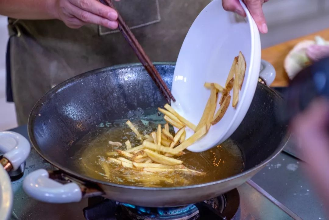【8】炸薯条将滤干水的薯条入锅中炸。