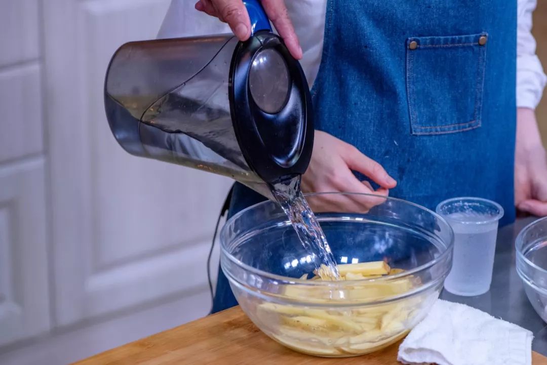 【2】泡土豆马铃薯条用水浸泡,洗出多余淀粉。