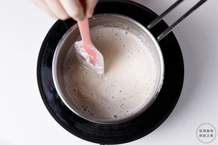 ③加40g玉米淀粉,中小火不停搅拌至浓稠。