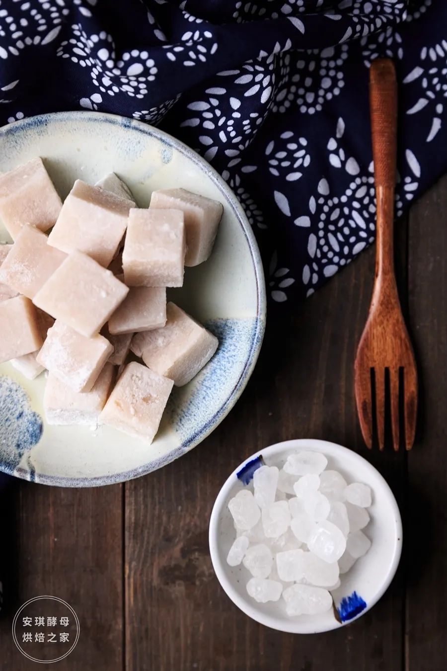⑥雪梨膏脱模切块,裹上熟淀粉即可。