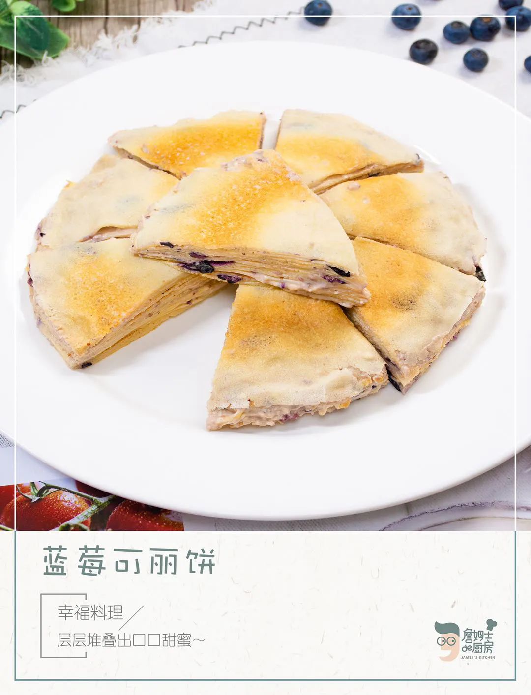 要学会每天给自己找一个开心的理由,今天就用这道蓝莓千层可丽饼来帮你充电,吃一口可以幸福一整天,赶快试试吧!