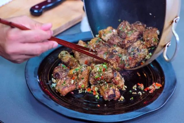 【21】盛盘将椒盐排骨盛盘。