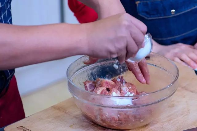 ▼做这道椒盐排骨如果不事先在腌制排骨的环节加入足够的水,排骨做出来肉质就会很干柴。