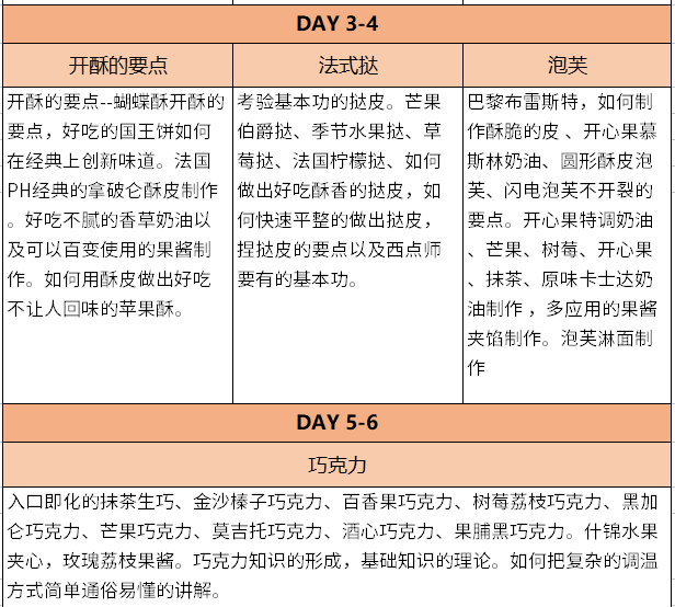 课程的设置与教学特色基础 VS 进阶1.课程遵循循序渐进,从基础开始,建立一个全面的体系。一个好的入门基础,对材料的认知理解熟悉其作用,所有好的烘焙基础手法认知和掌握。这些都是非常重要。知其然,才能知其所以然。比如各种果胶的使用以及特性,各个配方的分解,如何运用所学内容去组合出更多,以及能随时应变市场的竞争。2.我们没有华丽的简介,取而代之的是实际的教学内容。在教学的过程中我们更加注重:口味,细节,技巧等等。口味:经过学员们市场的考验,也因此大多数的学员们都是经过口碑相传而来。我们始终相信以及坚持:味道才是唯一检验的标准。细节:1.除了慢工出细活外,我们更加注重操作的细节撑控。2.我们把每个细节都扩大化去着重要求,比如:打蛋的手法,基础温度的要求以及作用,蛋白的存放以及打发的手法和温度(对日后学员制作其它糕点起到重要性的作用)3.MOMO老师课堂对细节要求非常严格,这也是学员们靠口碑找到MOMO老师的一个重要原因。升级:1. 经过课程专业培训后对学员进行考核,考核合格后颁发国家职业技能等级证书,国家认可,网上可查。13天综合课-课程内容