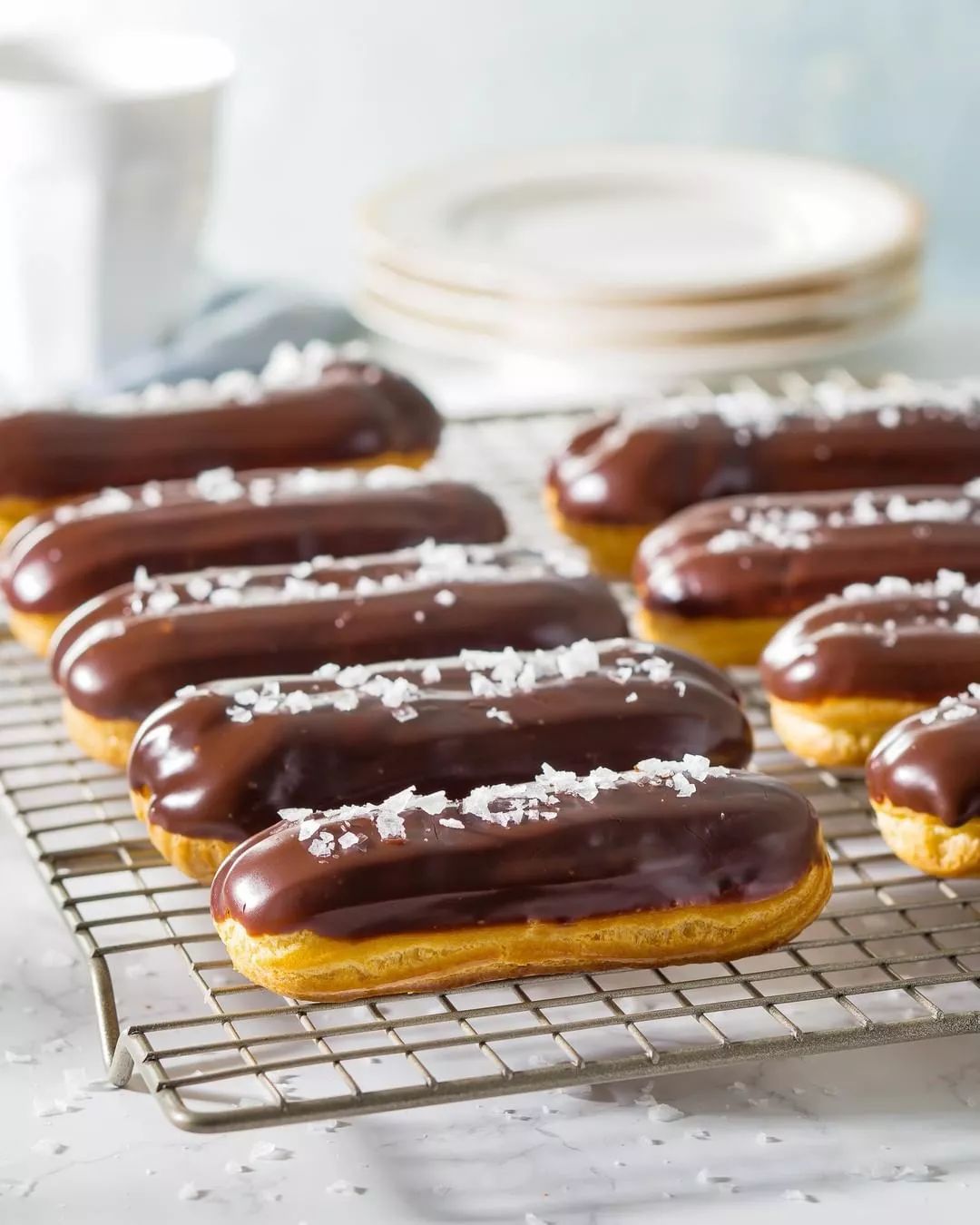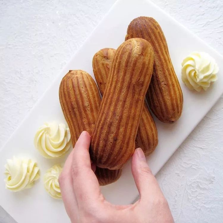 (图片来源:ins)在泡芙壳上打好孔一年四季可以加不同口味的内馅外皮嚼劲十足保证口感内馅柔软顺滑留存风味简直是超完美搭配~看完是不是已经蠢蠢欲动跃跃欲试了?别急,配方我早就备好啦/ 巧克力闪电泡芙 /