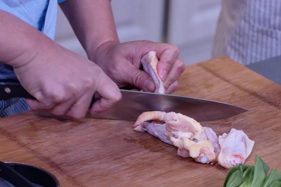 【1】切鸡翅将3只完整的鸡翅按照鸡翅尖、鸡中翅、鸡翅根切成小块。