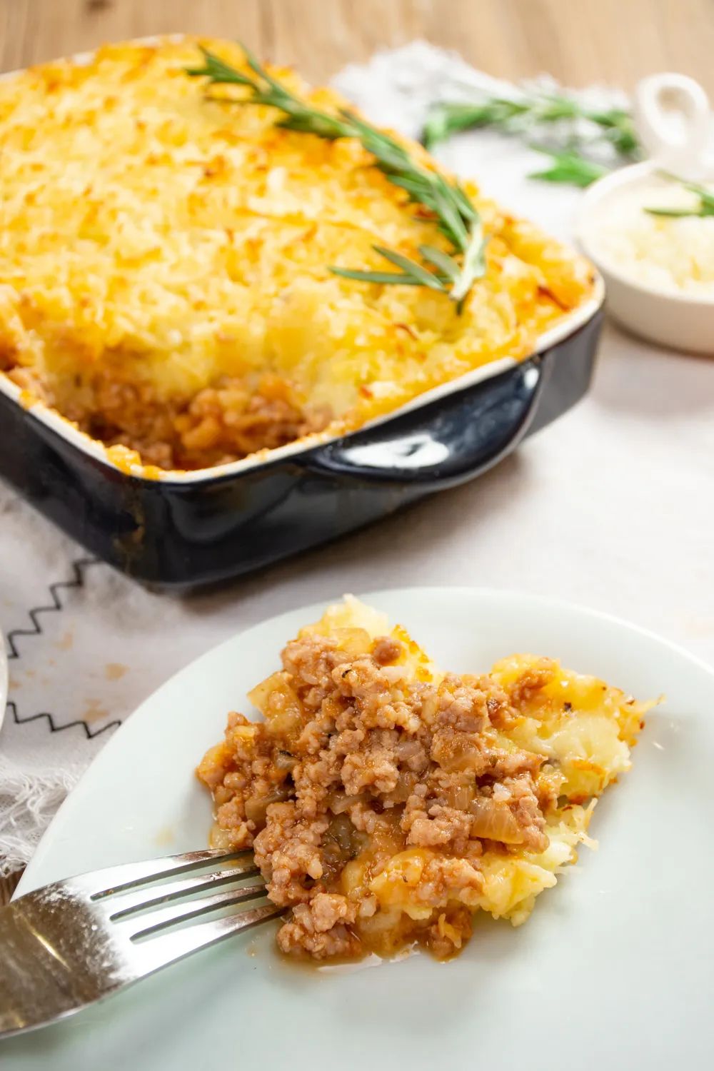 食物也在进化,现在的牧羊人派常指表面涂上一层土豆泥或薯泥的派,也可以有派皮包裹,给人带来更多的惊喜~当你开动时,会挖到一勺带脆皮的土豆泥、鲜嫩多汁的肉末和你爱的蔬菜。如果不怕长胖,还可以根据喜好在土豆泥上铺上起司丝,拉丝的起司又可增加一层意外之美~