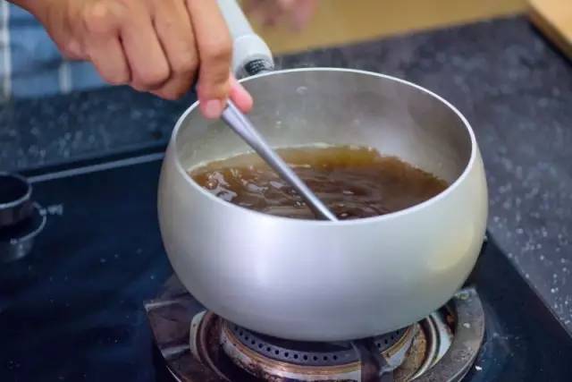 【4】熬糖水400g的黑糖倒入水中,开火熬煮糖水。