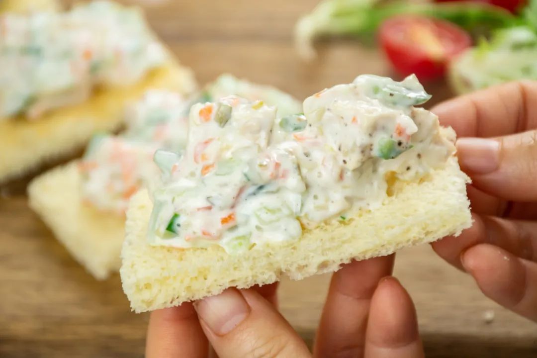 鸡肉的鲜,黄瓜、胡萝卜的清甜,加上酸黄瓜的酸爽,再配上面包的脆,清爽解腻又开胃,不爱都不行。食材都是切成细丁状,对肠胃没有任何负担,大家就放心吃吧~