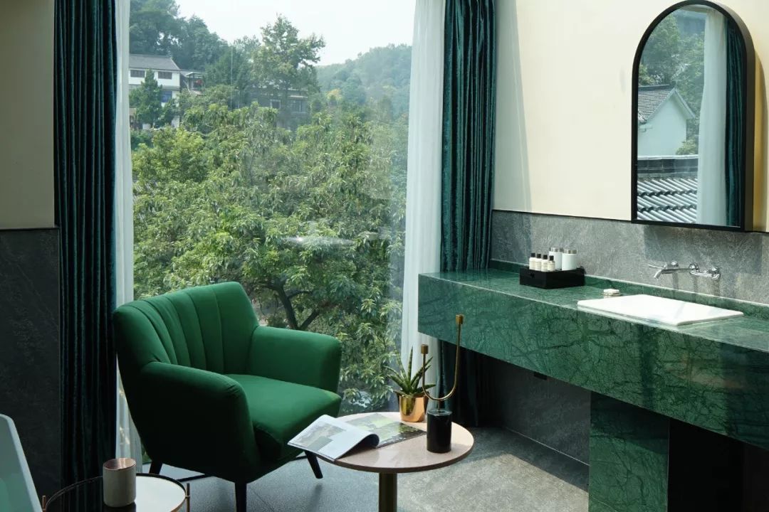 无论是简象的设计,还是Jane微博上更新的动态,都是她基于美感而给出的生活答卷,例如每日的ootd、游玩外宿时的一瞬风景,又或者是自己的理想家完成后,高兴地输入“如果喜欢的人多,我会写一篇设计装修以及软装搭配分享的文章,么么哒~”并发送,仿佛许多女生都喜欢的美丽她都有,还创造了一份独属于自己的小美丽。-挑剔是为美而坚持对Jane的采访仍有一段公式化的内容,侧重点更偏向作为酒店本体的简象,而让人难以忽视的,是她自始至终对美的坚持。简象所在的村落建筑,拥有经典且传统的杭派风格,白墙黑瓦、深檐、青石板,满山的绿树更是将简象衬出一种恬静优雅的风情。我们现在有幸能看见保存得如此完好的建筑外形,是Jane的坚持。