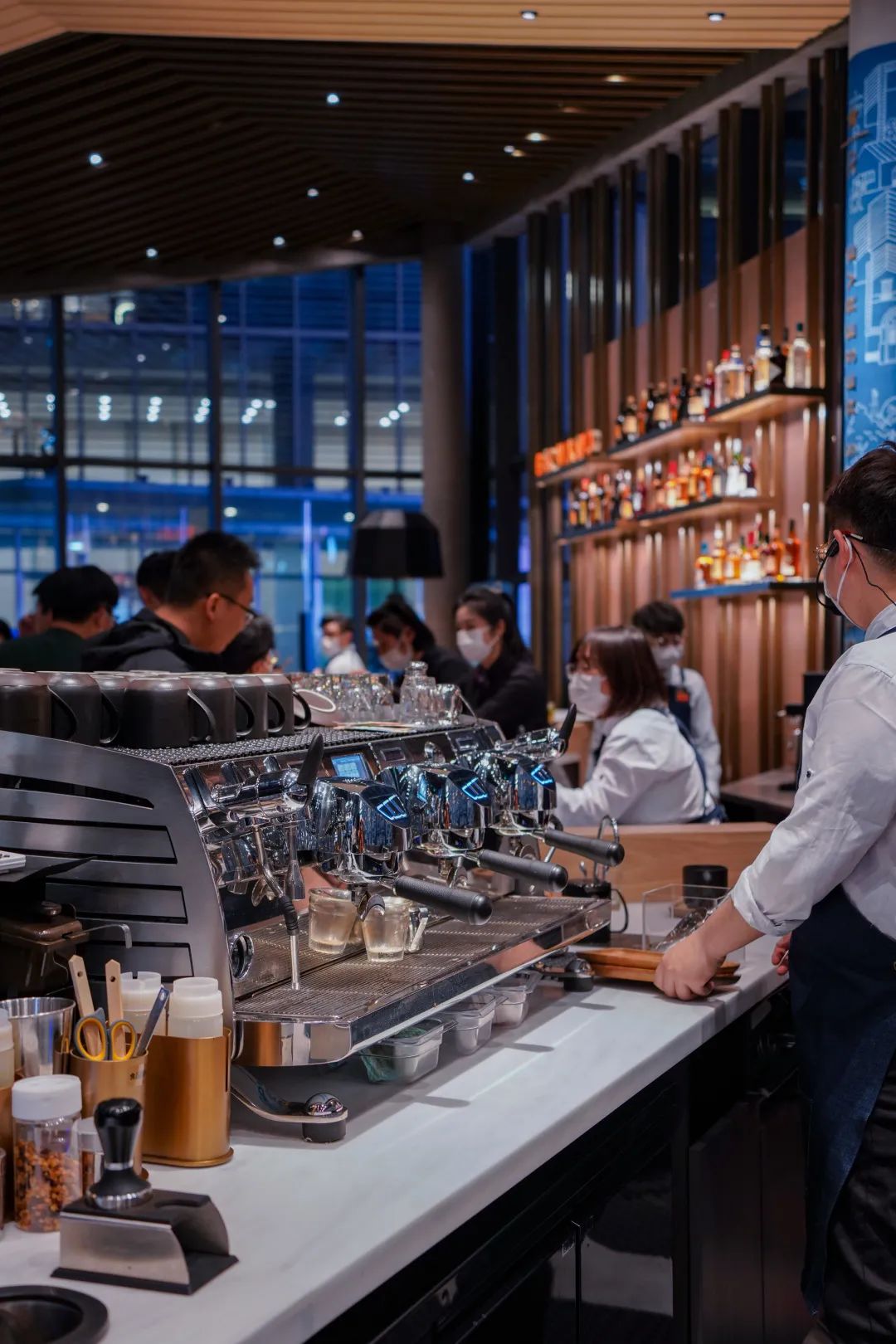 黑鹰半自动浓缩咖啡机也坐镇吧台,专业的咖啡师们以精湛的技艺和热情的服务守护着“最后十英尺”,为顾客呈递一杯杯高品质的咖啡。