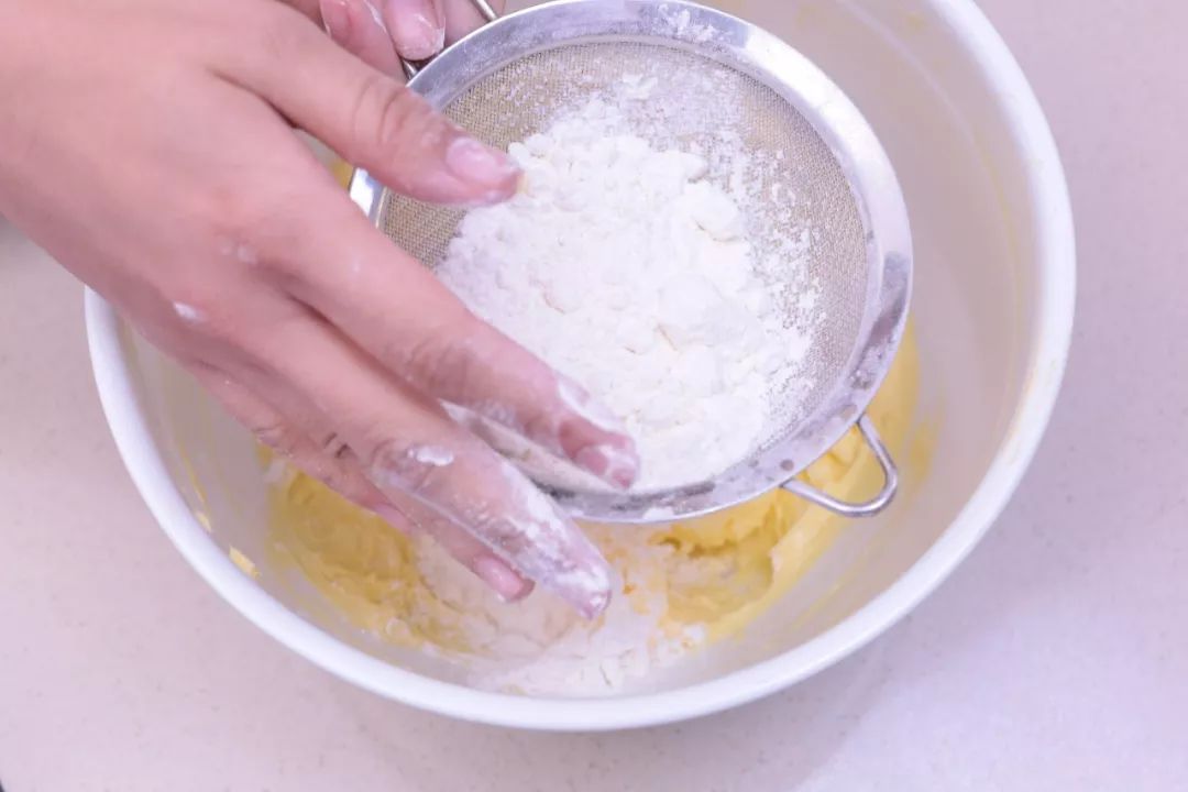 制作螺旋派饼干:制作派皮:①软化的黄油与粉类切拌均匀。