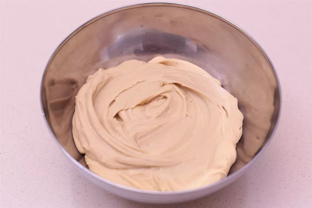 ⑤打发完成以后,加入之前做好的栗子泥,低速混合均匀即可。