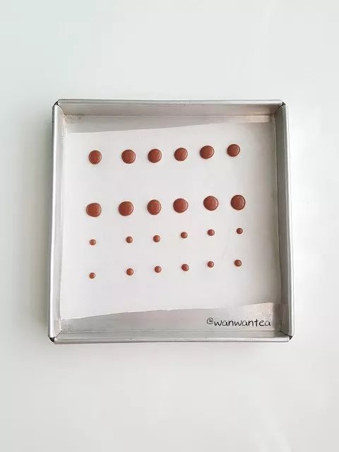 ⑦接着,在烘焙纸上挤出大小圆形状的褐色面糊。蒸大概2分钟即可。