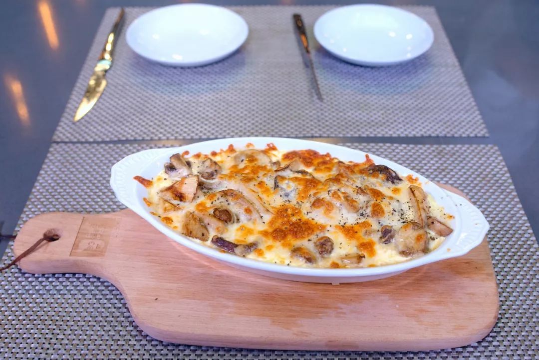 【7】焗烤将焗烤盘放入预热到220℃的烤箱中,烤至起司丝融化即可。