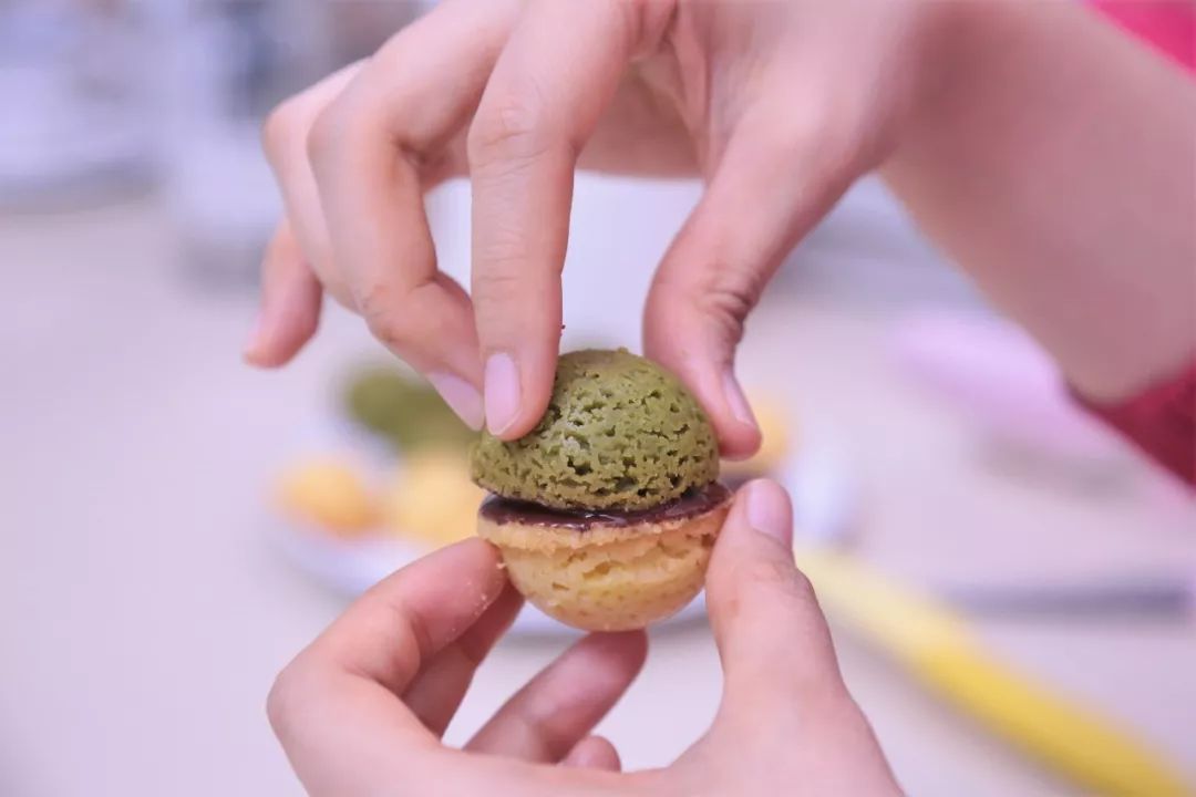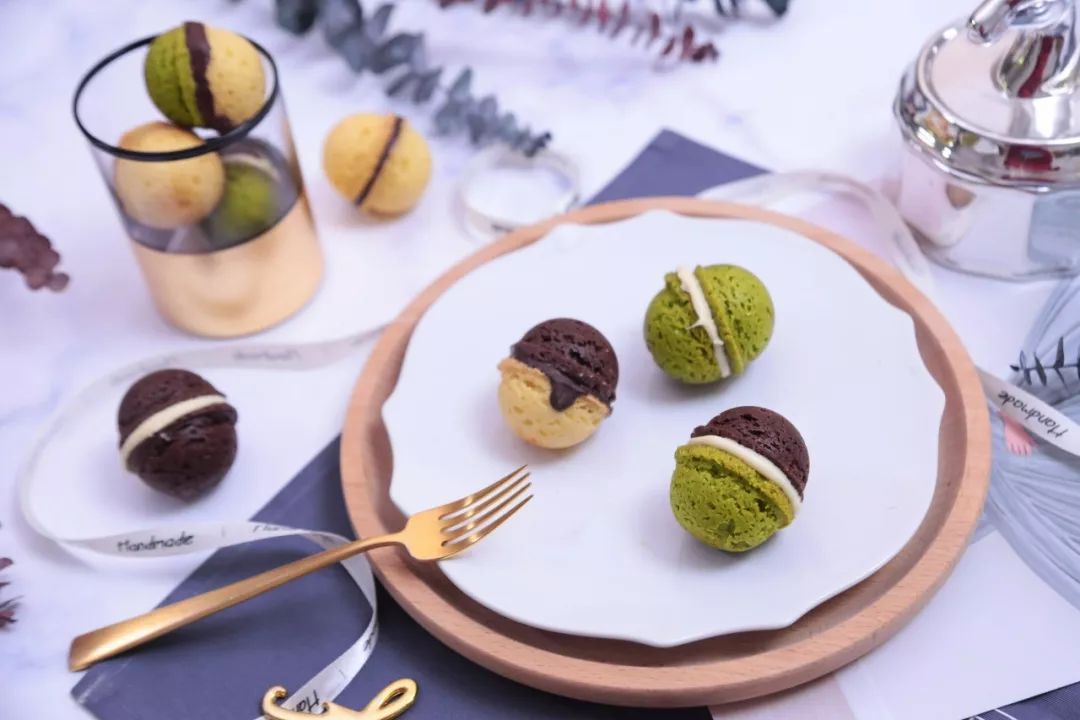 今天这款像极小铃铛的饼干灵感来自意大利的Baci di Dama常译为贵妇之吻或淑女之吻以巧克力结合的两片小脆饼象征淑女的嘴唇入口瞬间洋溢巧克力气味的浓浓甜香暴击一秒就让人坠入爱河!