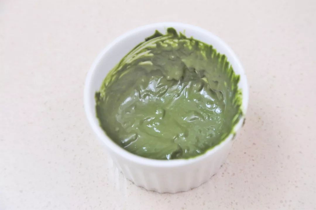 制作抹茶凉糕层:①将1/3牛奶与玉米淀粉搅拌均匀备用。