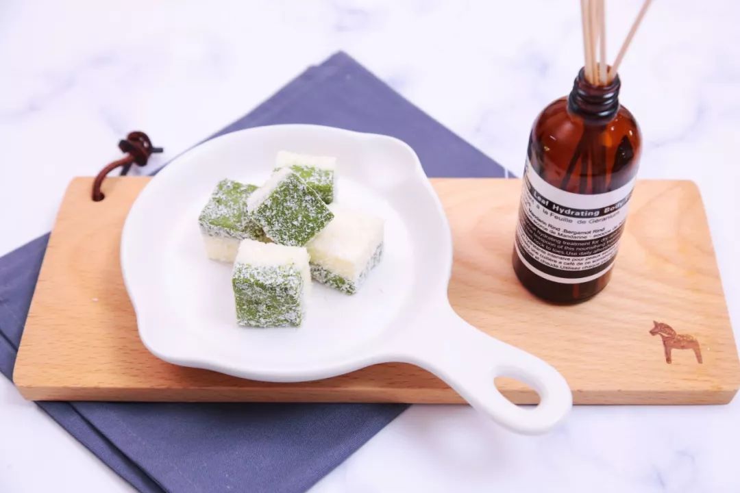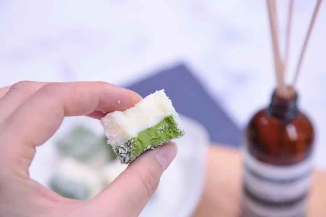 口感吃起来软嫩嫩甜度也恰恰好浓浓奶香里包裹着抹茶清爽的气息搭配外层椰蓉带来的独特香气与嚼感简单的甜品却有着不简单的味道低糖低油的配置健康无负担最适合做给亲爱的家人一起共享啦!