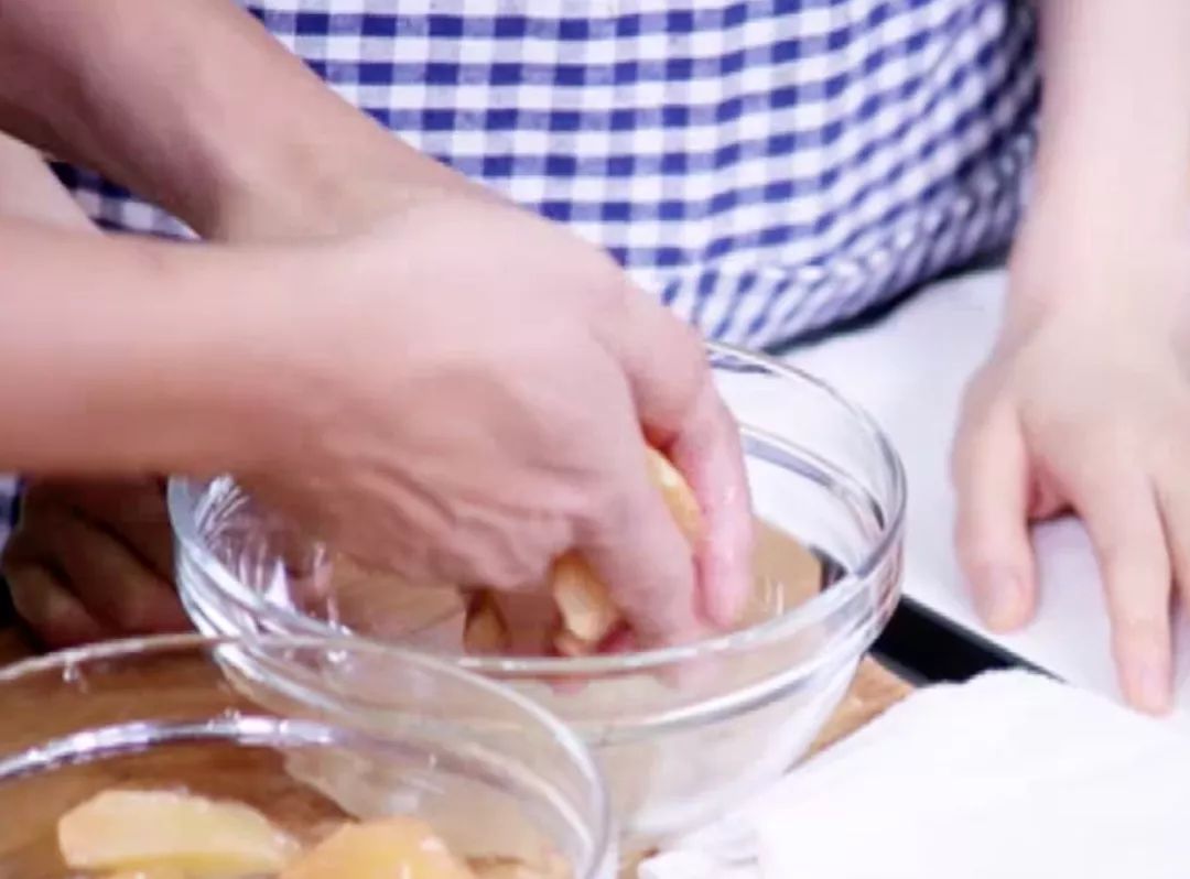 【1】切果肉将葡萄柚去皮,然后将果肉切入碗中备用。