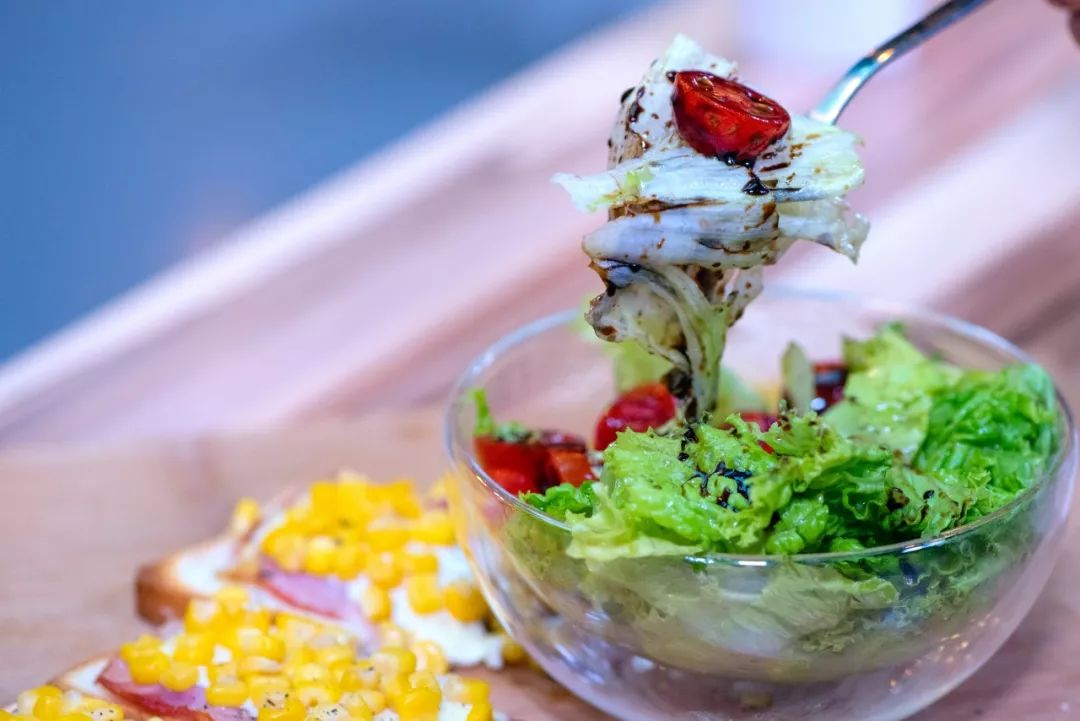 【8】拌蔬菜将综合生菜切块、小番茄对半切放入碗中,再加入适量橄榄油、盐,搅拌均匀后淋上巴萨米克醋。