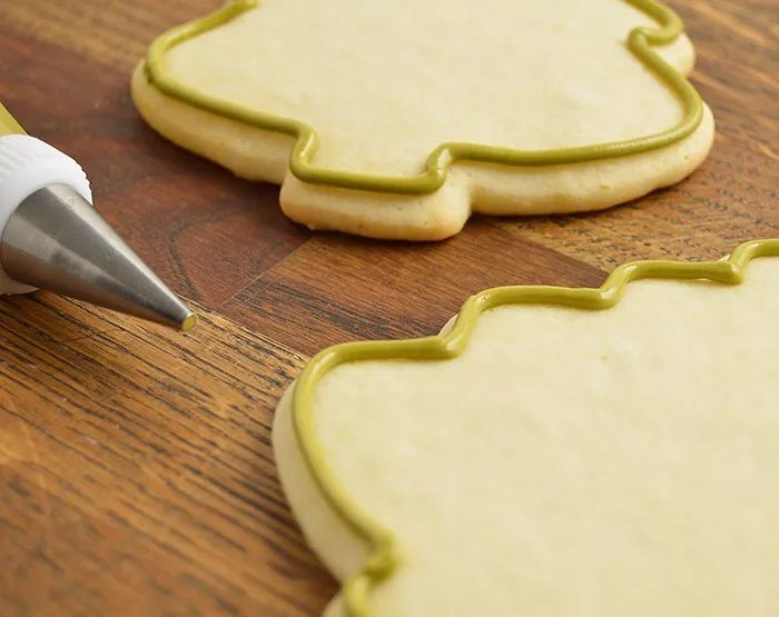 因为需要用到边框所以使用这款糖霜时可以更容易操作且结合边框的精确性可以设计制作造型更加复杂的糖霜饼干▼操作步骤:1、在开始操作之前,先将裱好的边框晾干5~10分钟。