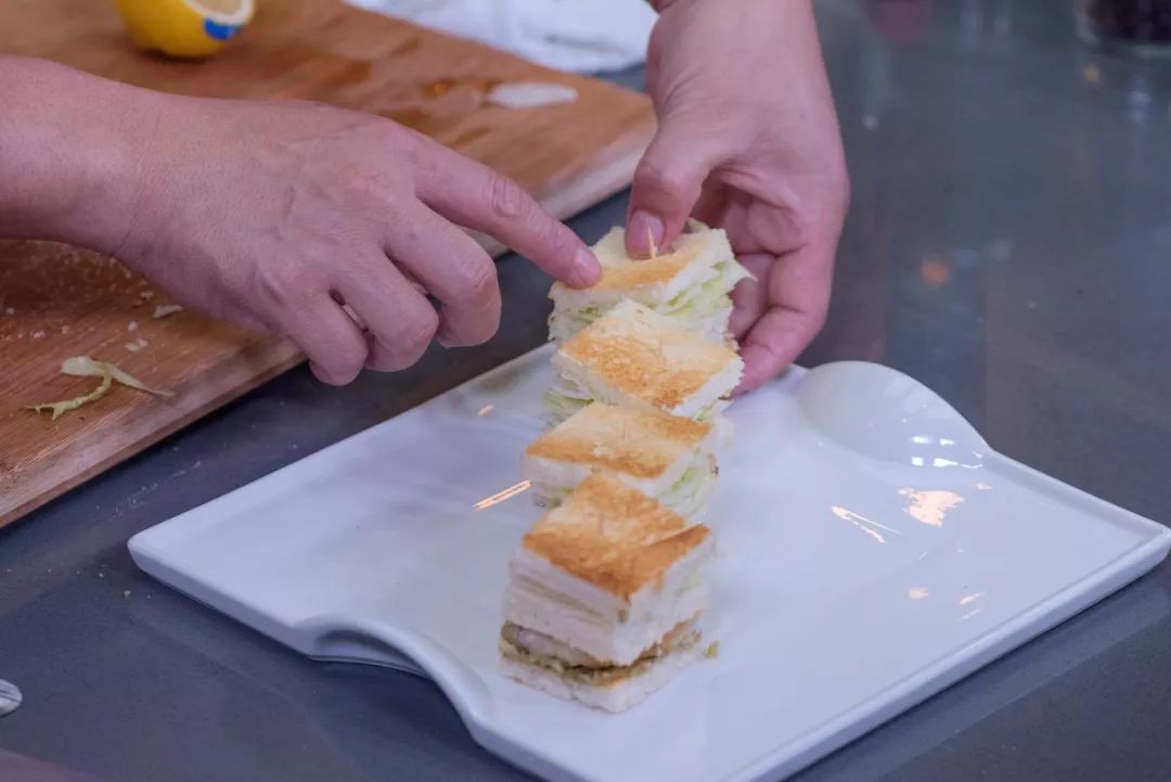 【19】盛盘将切好的三明治放入盘中即可享用这道美食了!