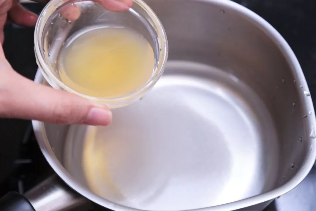 ②将柠檬汁、水放入锅中,加入砂糖煮至融化。