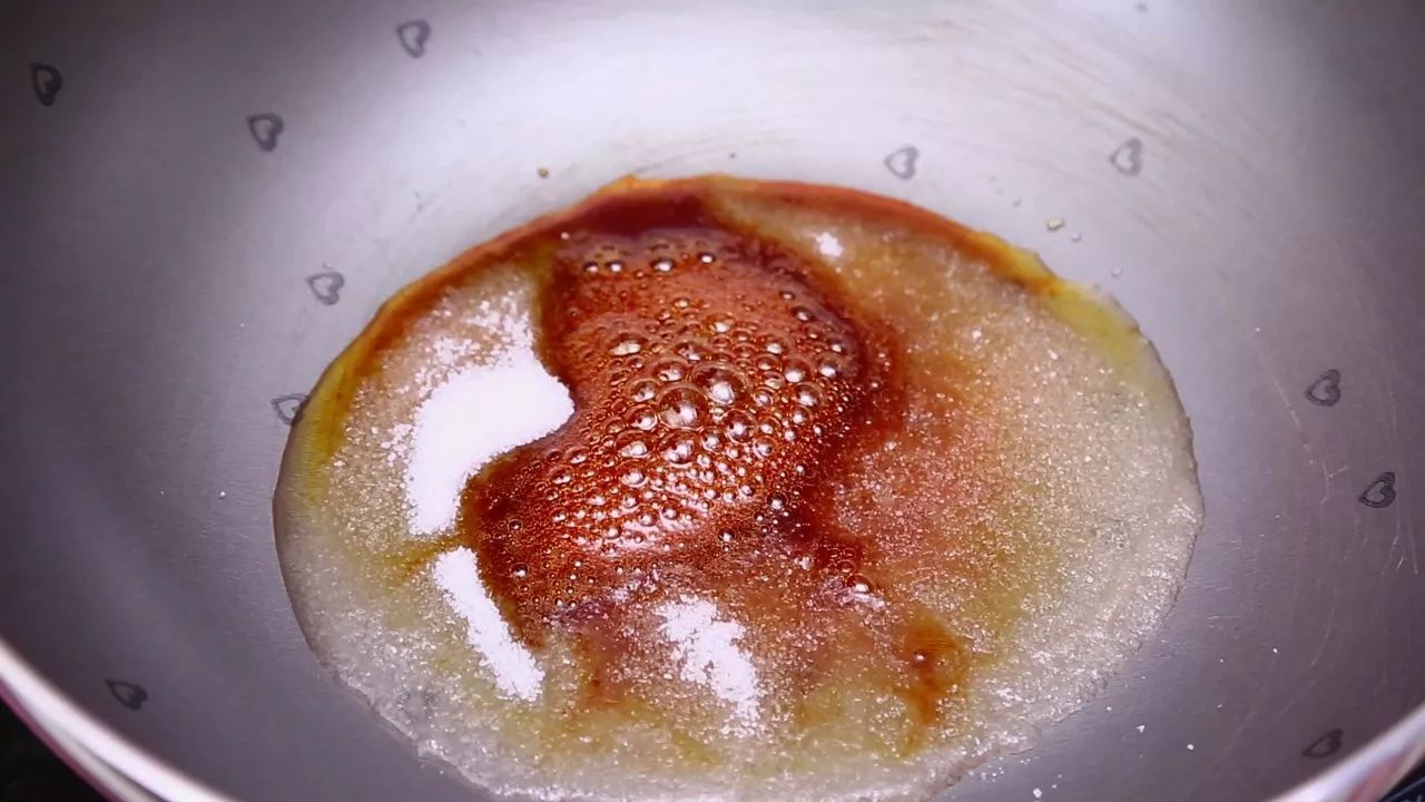 如果有香草荚,切半用刀尖将香草籽取出加入黄油糖液,香气会更有层次~