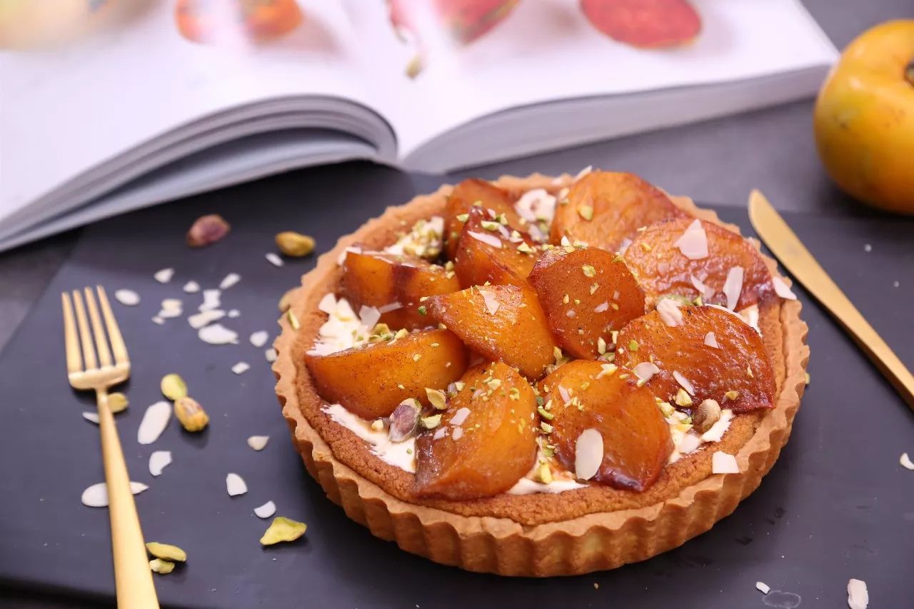 TIPSTIPS①柿子糖液刷上之后能让柿子表面湿润亮泽,但隔天就干了,如果希望亮泽感能维持到隔日,可以刷镜面果胶,一般在电商平台上的烘焙用品店铺都能找到。②挑柿子的时候,一定要尽量挑甜一些的,用的时候最好确认一下味道,这会影响到最后呈现的整体味觉质感哦!虽然这次我们给法餐主厨出了一个做甜品的难题,但是我们的主厨还是妥妥接住啦~ 最终给我们交出了美美的作业!看看,今天的柿子挞是不是让人很有食欲?