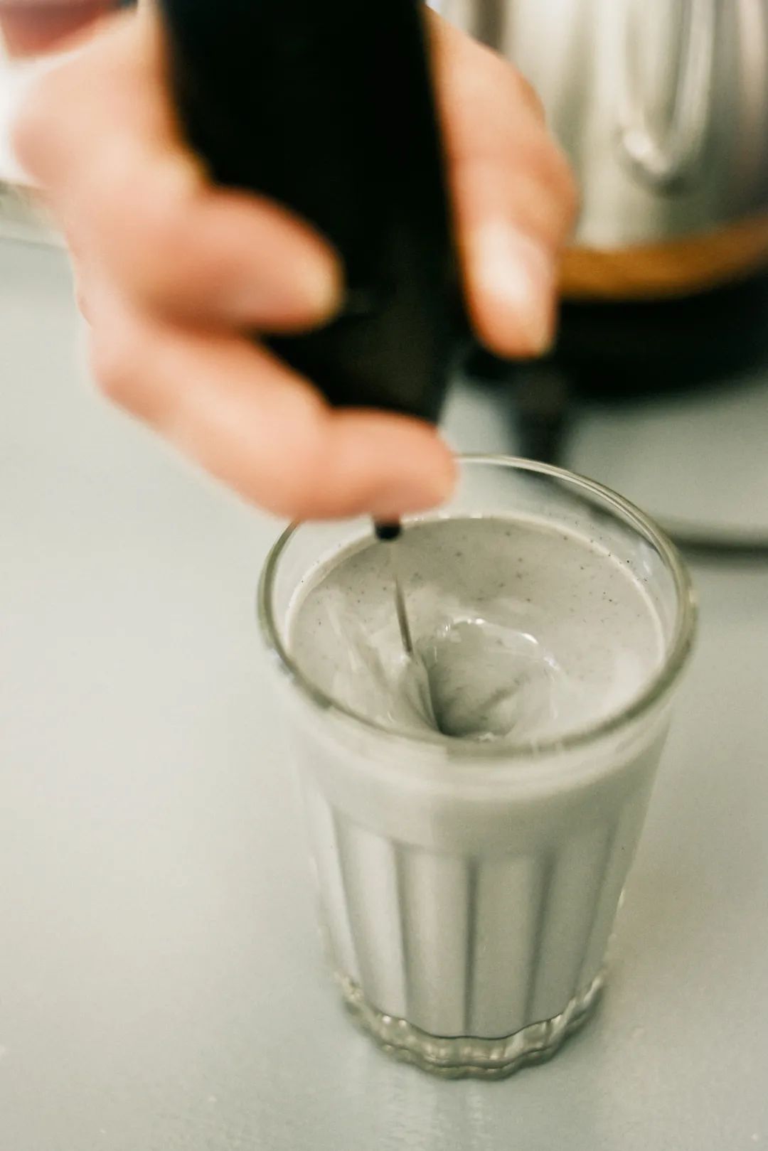 Wake Me Up Coffee的创意咖啡菜单也会不定时上新,比如这款与oatoat合作的特调,将燕麦奶和竹炭进行预先调味处理,再用制作dirty的方式将浓缩咖啡萃取在燕麦奶上。