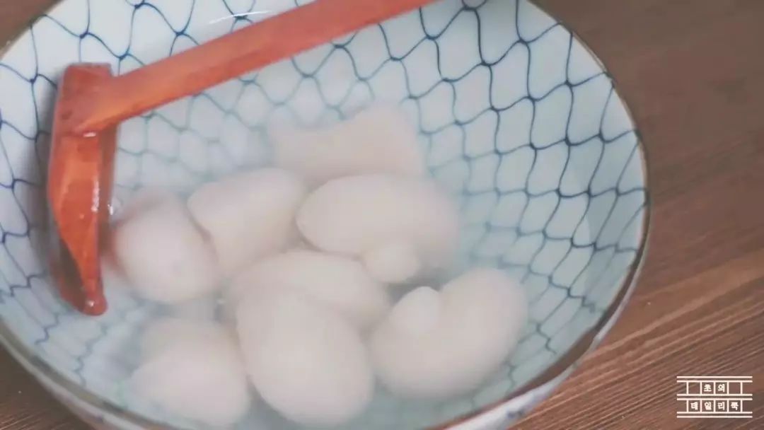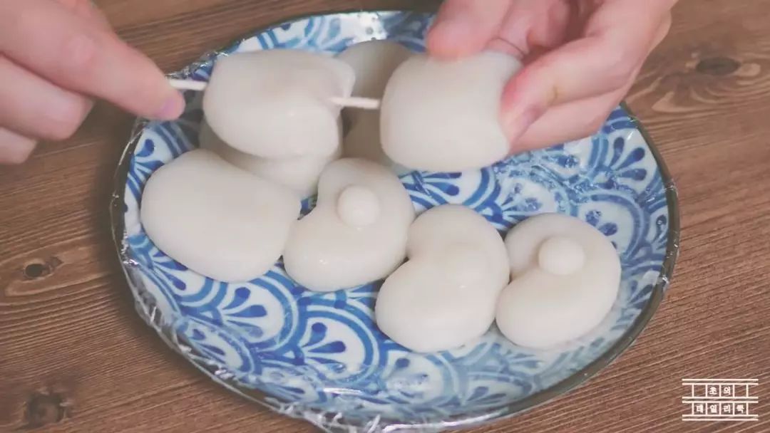 ④将汤圆放入沸水中煮至浮起,再捞出放入凉水或冰水中降温后捞出,用竹签串起备用。